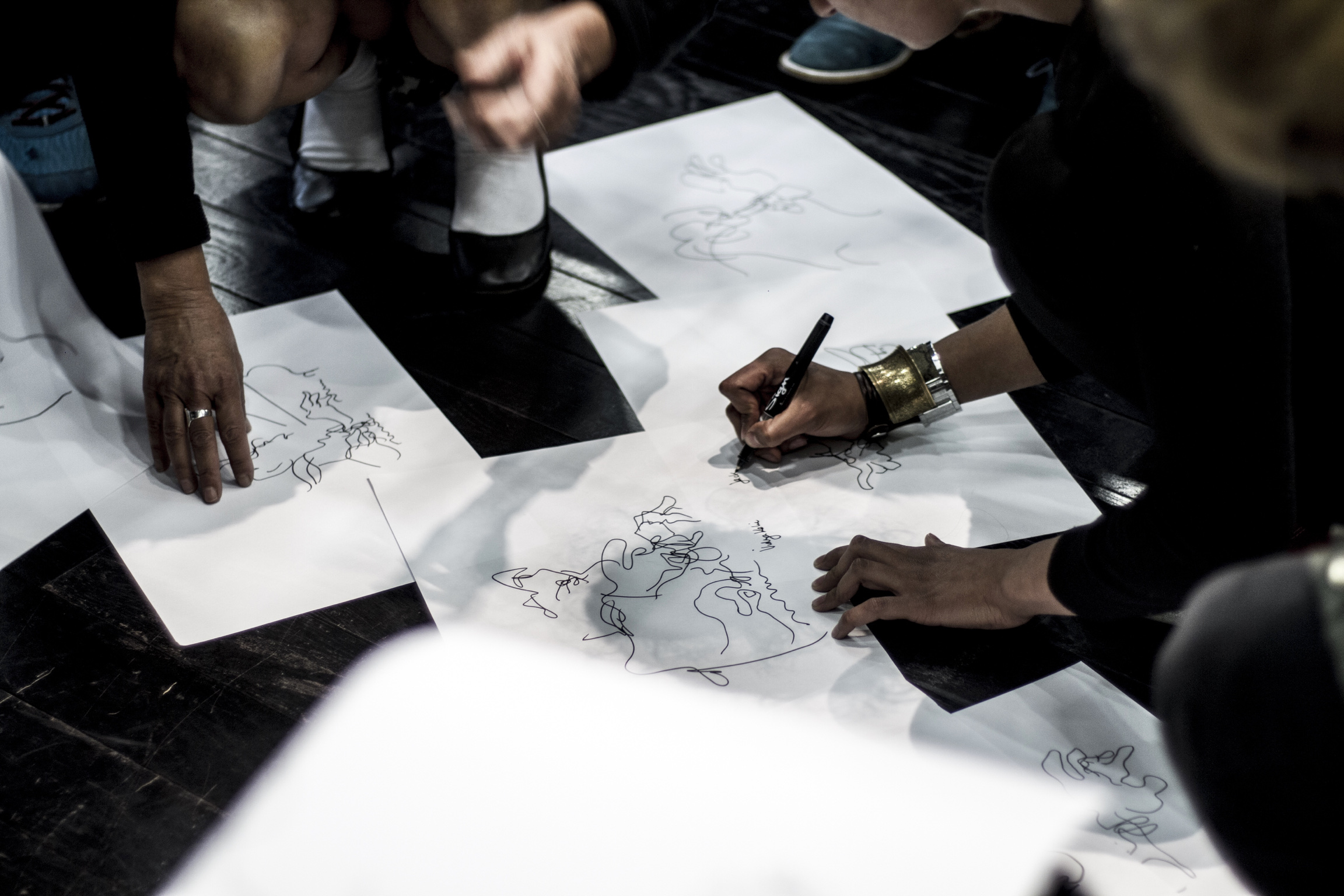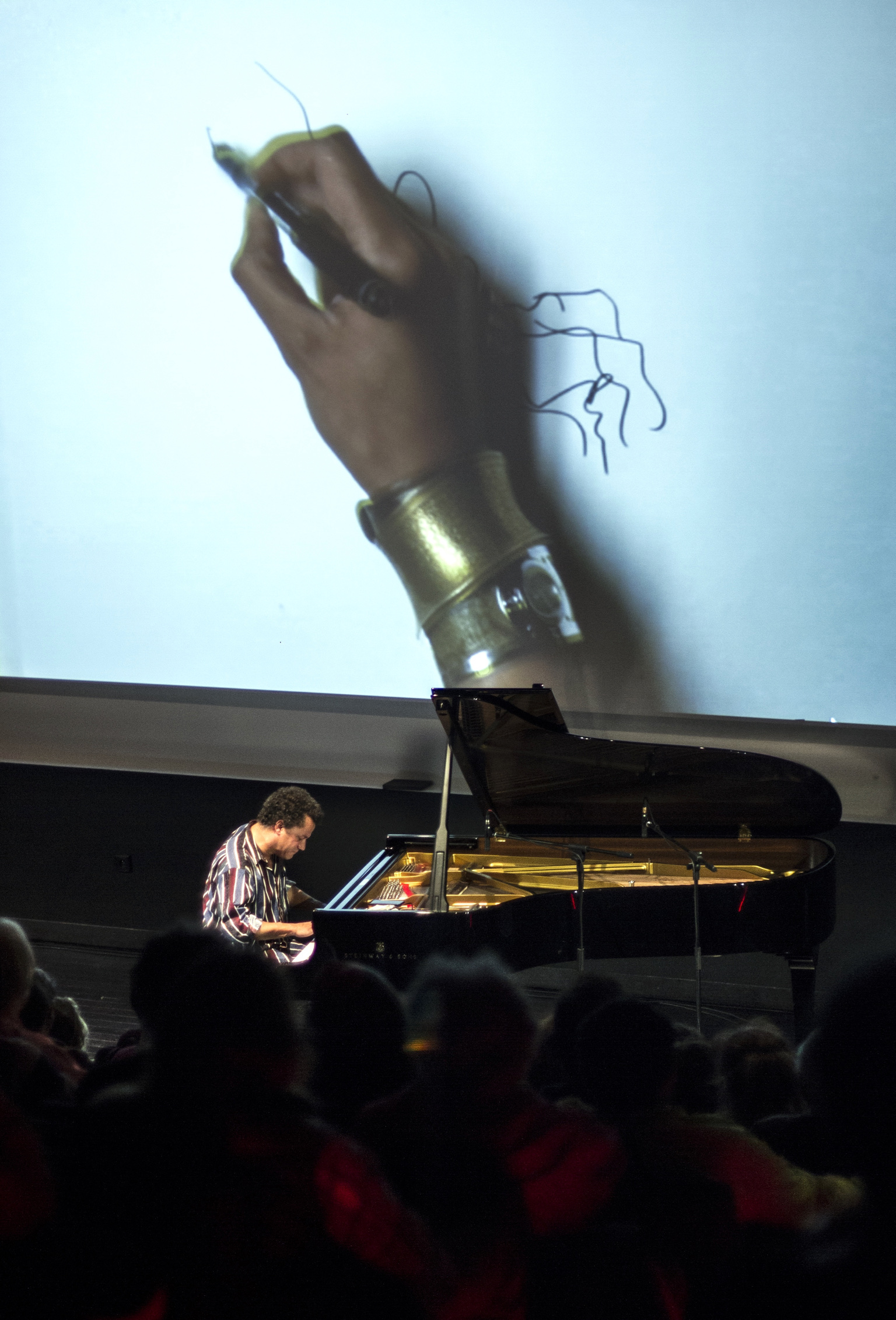 Par la projection des dessins en direct, elle mélange les genres en faisant danser la musique sur papier.